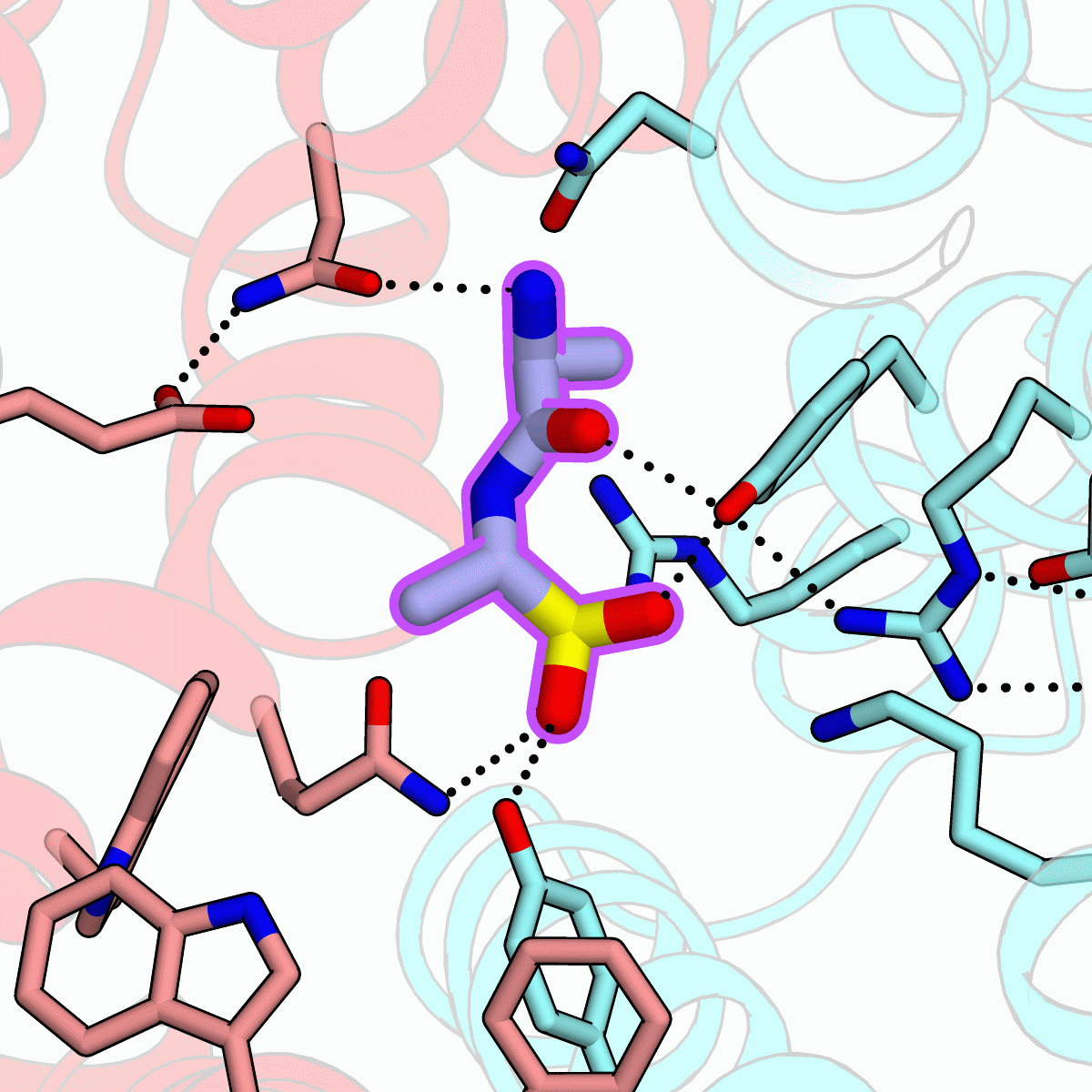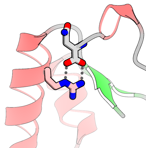 (Left) Salt bridge between Arg and C term carboxylate in crambin 1CRN, (Right) Oligopeptide transporter POT complexed with peptide analog, alafosfalin 4IKZ.