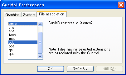 ファイルの関連付けについてCueMolのインストール直後のデフォルト状態では, ファイルの関連付けはまったく行われませんが,CueMol自体には,