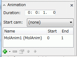 すなわち,Start value=1, End value=0にすると,逆方向の構造変化が起こることになります. OKボタンを押すとanimation itemが追加され,Animation panelは下図のようになります. アニメーションの実行以上でmorphing animationの作成は完了しました. cuemol2/Anim_Basicの「アニメーションの実行」にある方法に従ってアニメーションを再生すると,構造の変形がアニメーションとして表示されます. Chain Aについてリボン表示にし,さらに戻る構造変化(startValue=1→endValue=0)も追加すると, 以下のようなアニメーションになります. 注意点など始点,終点等の分子構造の不一致変化の始点や終点,あるいは中間点の分子座標について,それぞれすべて対応する残基・原子が存在していない場合は,それらの原子はmorhping計算から除外されます. すなわち,(this)で表されるメイン座標に対応する原子が,他のサブ座標に存在しない場合はmorphing animation中その原子は静止したままとなります. 一方,メイン座標に無い原子がサブ座標にあった場合,それらは読み込み時に無視されます. 以上のような実装になっているため,全く同じ分子について異なる状態で決定された構造間のmorphingは簡単にできますが,似ているが異なるホモログ間の変形等は,そのままではうまく行きません. 各分子についてホモロジ―モデリング等でモデル構造を作成し,残基番号などをそろえることで, 正しくmorphingさせることが可能となります. 大きな構造変化線形補間のmorphingでは,非常に大きなドメインレベルでの変化を表現するのは困難ですが, 他のソフトウェアで構造変化の中間構造を何個か作成し, それらを線形補間morphingでつなぎ合わせることでアニメーションを作成することができます. |