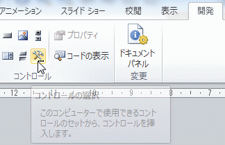 表示したいシーンの作成まず,表示したいシーンを作成し,qscファイルとして保存します. ともかくも,シーン(qscファイル)を読み込んだら, 分子の図が見せたい方向と大きさで出るようにしておくわけです. PowerPoint側での準備次に,PowerPointのほうで,リボンのところに「開発」というのを表示させるようにします. これはデフォルトでは出てないですが,