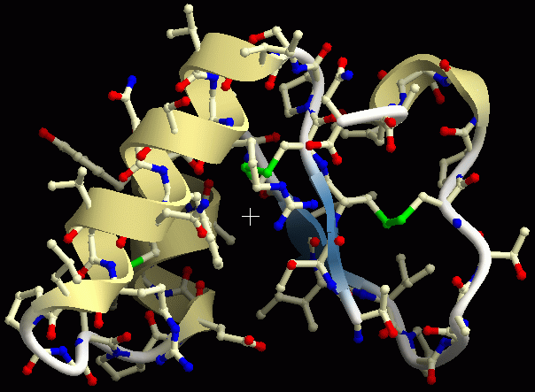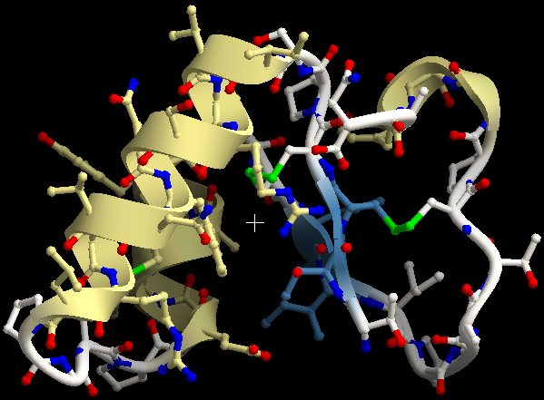 で全体的に統一した着色の図が作成できます. その他修飾子の指定分子色($molcol)も,他の色表記と同様に修飾子をつけて色を変化させることができます. 例えば,炭素の色を主鎖の色より薄く(あるいは濃く)したい場合は,CPK coloringの炭素色のところに $molcol{mod_s:-0.5}