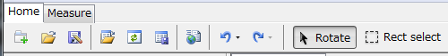 矩形(rectangle)による原子の選択Home ribbonには,下図のようにツールバーボタンとRotateボタン以外に,Rect selectというボタンがあります. Defaultでは,Rotateが選ばれていて,この状態で画面をドラッグすると画面が回転しますが,Rect selectの方を選択すると,矩形選択(Rect select)モードに入ります. Rect select modeこの状態になっていると,画面を(左ボタン)ドラッグすると下図のように画面に矩形が描かれます. 左ボタンを離すと,以下のように矩形の中に入っている原子のみが選択されます. このように,画面水平方向に関しては表示されている通りに選択されますが,奥行き(Z)方向については,スラブによって隠れている部分は選択の対象にはなりません. 選択が実行された後も,Rect select modeのままで,Rotate modeには自動的には戻りませんので注意してください. 少々面倒ですが,Rect selectから抜けるには,上記のRotateボタンをクリックして,Rotateモードにしてください. Rendererによる違い上図のように,simpleや,他ballstickなど,原子すべてが描画されるタイプのrendererのばあいには,矩形に入っている原子のみが(残基に関係なく)選択されます. 一方で,traceやribbonなど,主鎖のみが描画されるタイプのrendererでは, 主鎖のpivot原子(タンパク質の場合はCα)が矩形に入ると,その残基すべてが選択されることになります. |